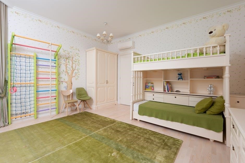 Consider using a night light to provide added visibility for a child navigating the upper bunk‚ especially during nighttime․ Limit the number of occupants on the upper bunk to one person at a time to prevent overloading and potential instability․ Regularly inspect the bunk bed for loose hardware and tighten as needed․